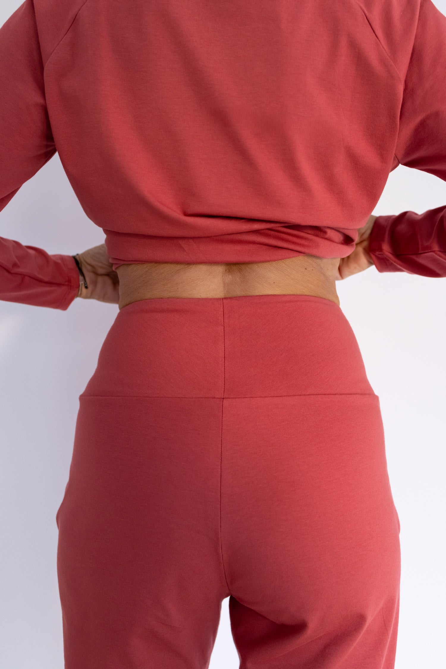 - Pantalón con banda ancha y puño en el tobillo del modelo Origen..